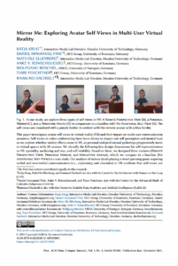 title = {Mirror Me: Exploring Avatar Self-Views in Multi-User Virtual Reality},