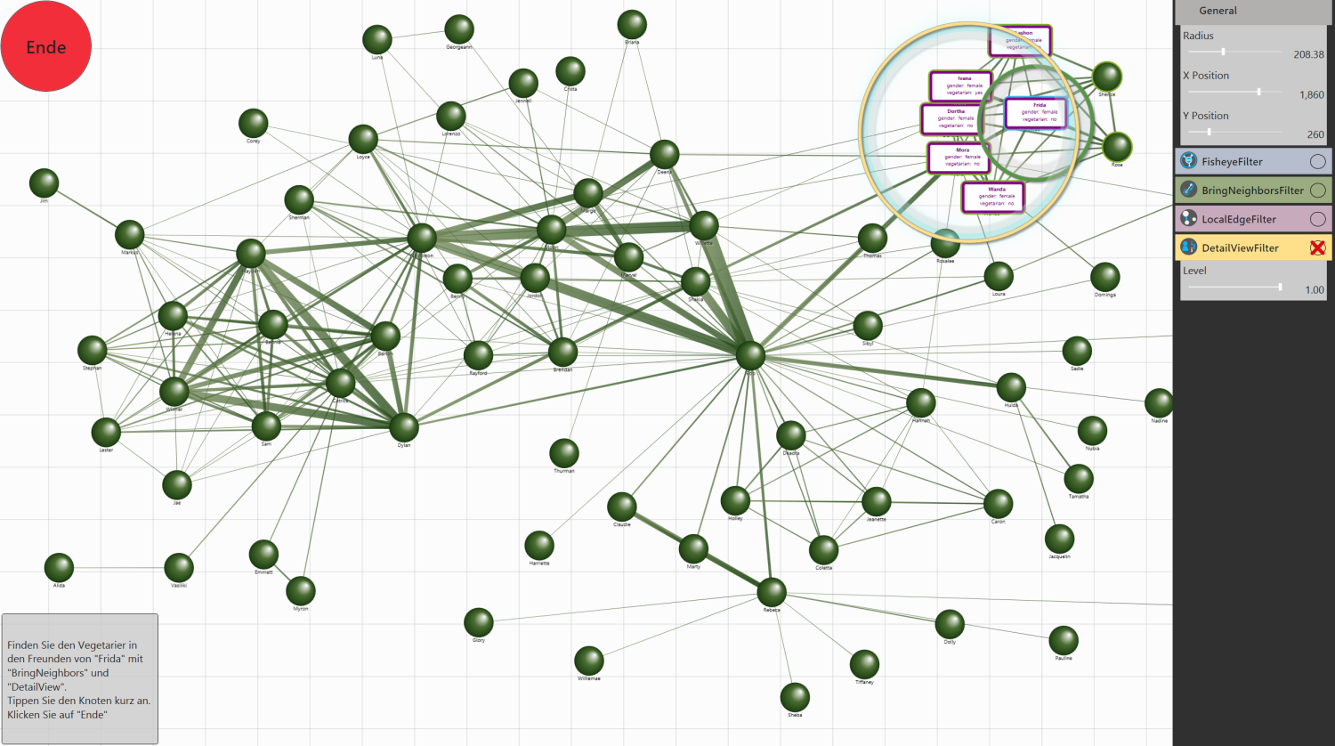 The complex analysis of huge data sets is an increasing challenge in information visualization. With the help of Magic Lenses the somtimes confusing visualization of those data sets is being locally manipulated and simplified. Especially the amount of filter functions and how they can be altered matter. The advantages of multitouch displays in comparison to conventional mouse and keyboard interaction are used. However, there occur continual problems with the adaption of existing menu designs. Since Magic Lenses have to be parameterized with those menus the question arises which kind of menu and interaction are more fitting. In this work we evaluate a multitouch based context menu for Magic Lenses. It is located directly at the lens and compact but new to users. We test its competitiveness to a classical global menu specifically designed and implemented for this study. Users are more familiar with it but it is distanced from the lens. Finally, the results are summarized and analyzed under quantitative and qualitative points. It turns out that classical menus with touch interaction performed best. The multitouch-based context menu though was more popular with probands and was preferred for the work with lenses.